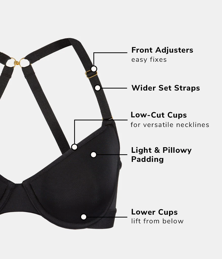 Our #1 bra, reimagined. Signature pillowy feels plus fashion-first details like a balconette neckline for scoop + square tops. Total comfort meets effortless style.